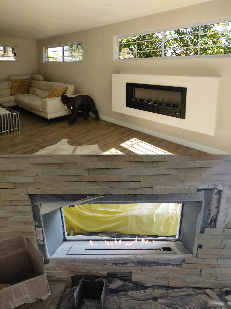 - Removal of old units (if applicable), connection of the new fireplace, and full system testing.